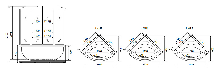 Кабина душевая TIMO Lux T-7725 120х120х230 см