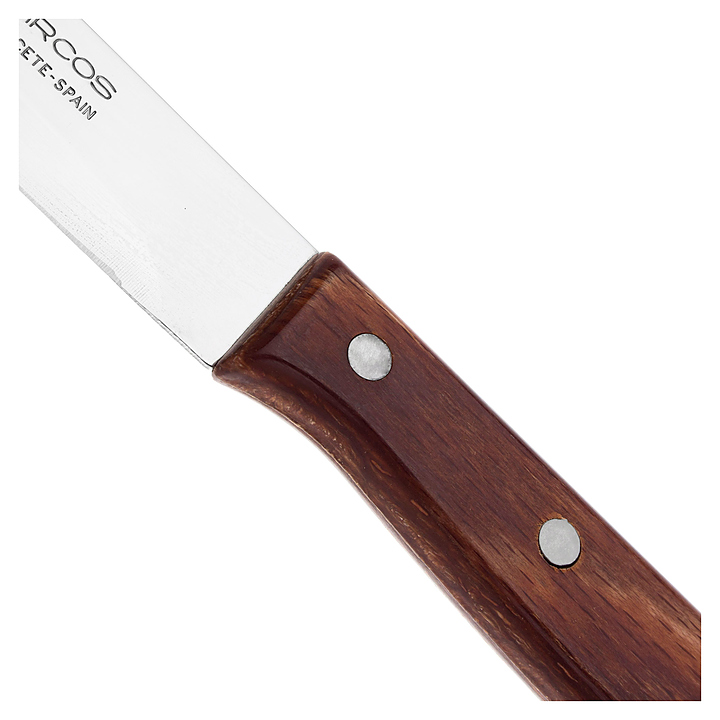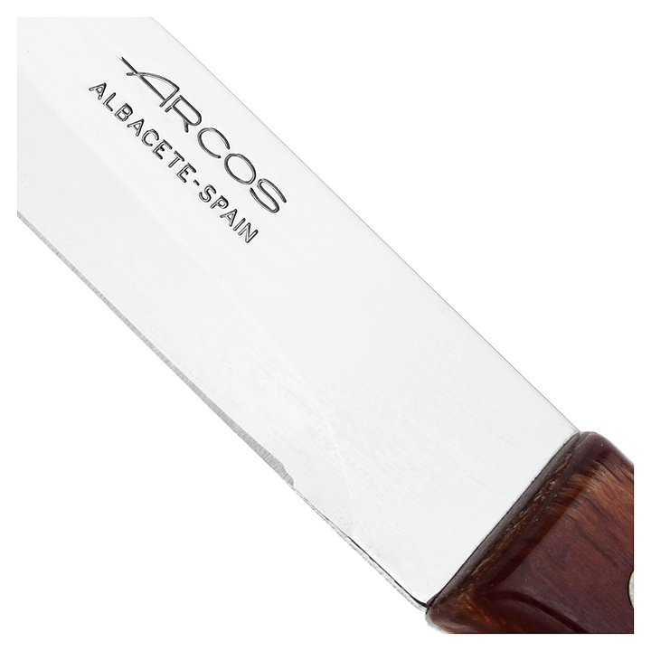 Кухонный нож Arcos Latina 100601 используется на предприятиях общественного питания и торговли, в частных домах и квартирах для нарезки овощей и фруктов. Клинок выполнен из обогащенного азотом, стального сплава NITRUM и является не только нержавеющим, но и экологичным, поскольку его производство не оказывает негативного воздействия на окружающую среду. Он устойчив к коррозии, отличается долговечностью, сохранением режущей кромки и презентабельным внешнем видом во время всего периода эксплуатации. Рукоятка выполнена из древесины, пропитанной полимерным составом - материал плотный, твердый, устойчивый к воздействию влаги, слабых щелочных и кислотных растворов, гнили и микроорганизмов. Особенности:
