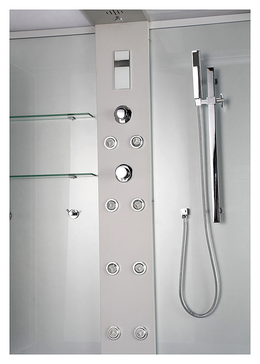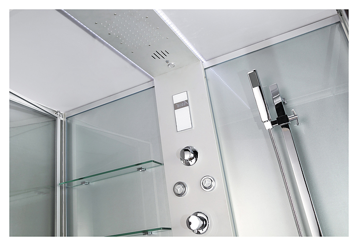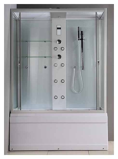 Душевая кабина TIMO Lux TL-1506 предназначена для использования в ванных комнатах. Модель оснащена крышей, двумя раздвижными дверцами, высоким поддоном на усиленном металлическом каркасе с возможностью набора воды в ванну, термостатическим смесителем, ручной лейкой с регулируемой по высоте штангой, тропическим верхним душем, точечным гидромассажем, сенсорной панелью управления, радио, подсветкой, двумя полочками, зеркалом, вентилятором и встроенным сиденьем. Поддон выполнен из качественного акрила, устойчивого к механическим повреждениям, обладающего высокой теплоемкостью, небольшим весом и повышенной шумоизоляцией. Особенности:
