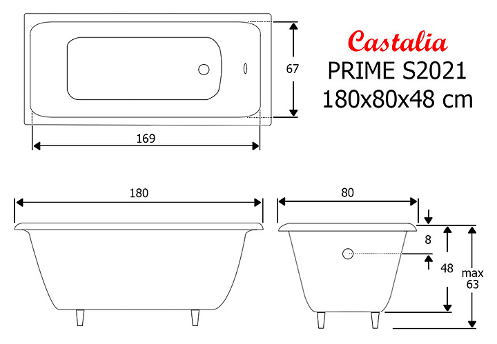 Ванна Castalia Prime S2021 180х80х48 см, чугун