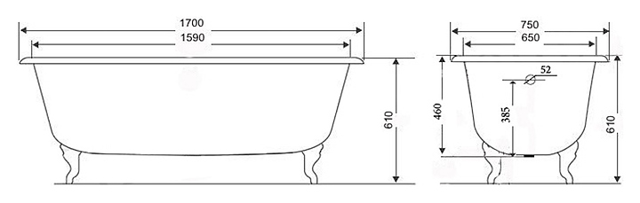 Ванна TIMO Standard 3V 170x75x46 см, чугун