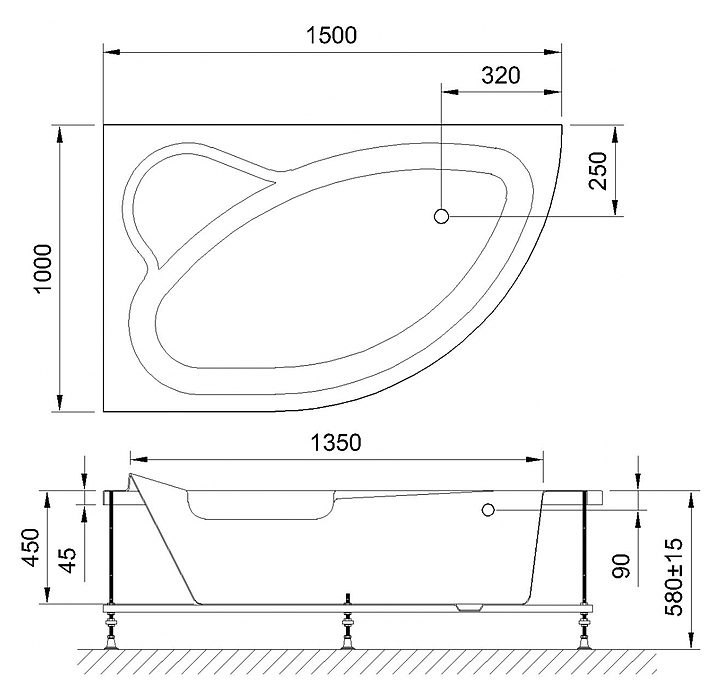 Ванна гидромассажная Royal Bath ALPINE STANDART RB819100ST-L 150х100x58 см, акрил