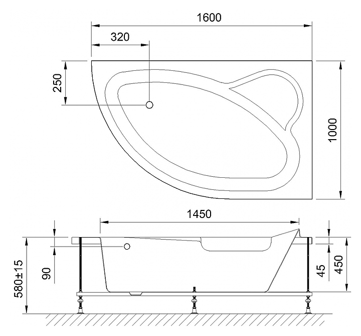 Ванна гидромассажная Royal Bath ALPINE STANDART RB819101ST-R 160х100x58 см, акрил