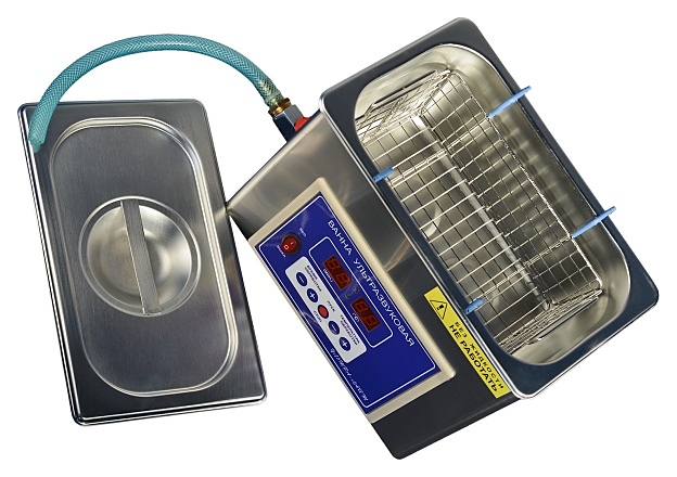 Ультразвуковая мойка Ферропласт ВУ-09-"Я-ФП"-03 предназначена для очистки и дезинфекции медицинских инструментов, приборов и посуды в стоматологических кабинетах, лабораториях и других медицинских учреждениях. Очистка осуществляется путем преобразования подводимой от генератора электроэнергии ультразвуковой частоты в механические колебания дна и стенок ванны, вызывающие кавитацию в моющем растворе. Модель оснащена пьезоэлементом на дне ванны, встроенным таймером электромеханического типа, и сливным краном дренажа отработанного моющего раствора для удобства обслуживающего медицинского персонала. Корпус, рабочая емкость и крышка выполнены из нержавеющей стали. Особенности: