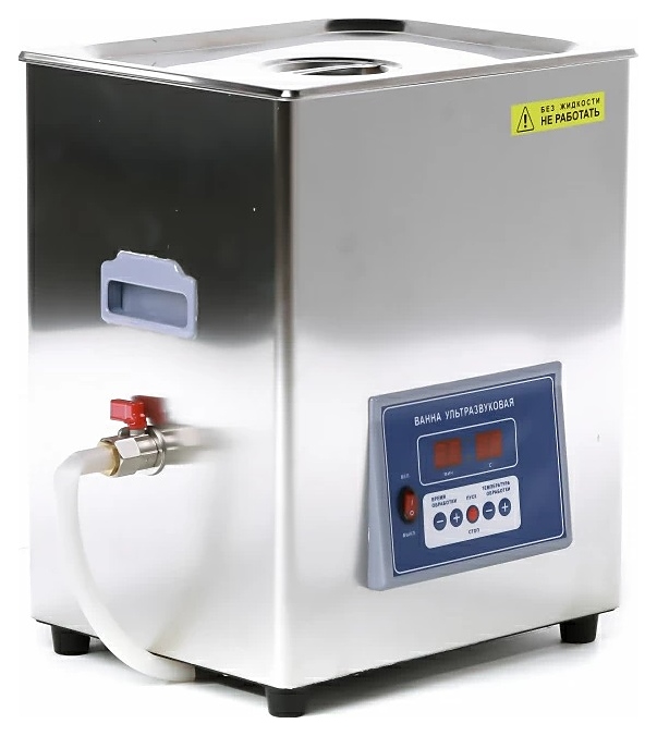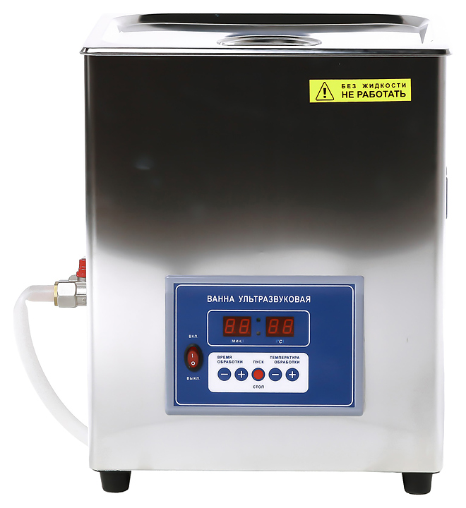 Ультразвуковая мойка Ферропласт ВУ-12-"Я-ФП"-01 предназначена для очистки и дезинфекции медицинских инструментов, приборов и посуды в стоматологических кабинетах, лабораториях и других медицинских учреждениях. Очистка осуществляется путем преобразования подводимой от генератора электроэнергии ультразвуковой частоты в механические колебания дна и стенок ванны, вызывающие кавитацию в моющем растворе. Модель оснащена пьезоэлементом на дне ванны, встроенным таймером электромеханического типа, и сливным краном дренажа отработанного моющего раствора для удобства обслуживающего медицинского персонала. Корпус, рабочая емкость и крышка выполнены из нержавеющей стали. Комплектация: