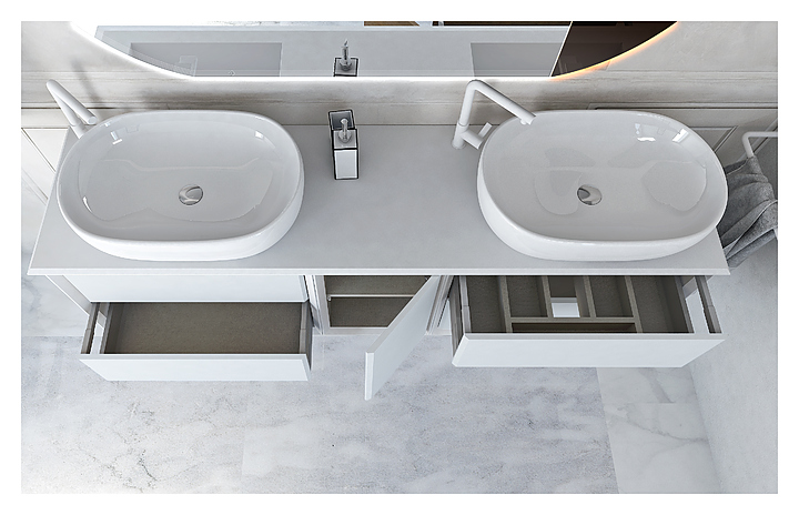 Тумба под раковину CEZARES BELLAGIO 54714 от популярного итальянского бренда освежит интерьер ванной комнаты. Благодаря подвесной конструкции модель не занимает много места, что экономит пространство в ванной комнате и облегчает уборку. Мебель оснащена двумя выдвижными ящиками с доводчиками для плавной и бесшумной работы. Благодаря сбалансированному дизайну и выверенным пропорциям тумба отлично впишется в любую ванную комнату. Особенности:
