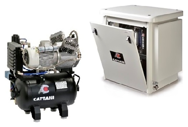 Компрессор Cattani на 2 установки, 2 цилиндра, с осушителем, в кожухе
