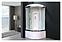 Душевая кабина Royal Bath RB100BK6-WT-CH используется в ванных комнатах. Модель оснащена душевой лейкой. Наличие сиденья обеспечивает максимальный комфорт при приеме душа, а на полке можно размещать необходимые мыльные принадлежности. Изделие выполнено из акрила, устойчивого к механическим повреждениям, обладающего небольшим весом и повышенной шумоизоляцией, безопасного закаленного стекла и усиленного алюминиевого профиля. В комплект поставки входит сифон. Особенности: