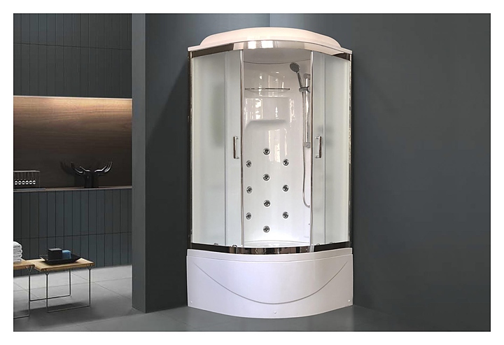 Душевая кабина Royal Bath RB100NRW-C-CH используется в ванных комнатах. Модель оснащена 10 съемными самоочищающимися форсунками для деликатного массажа спины, зеркалом и душевой лейкой. Наличие сиденья обеспечивает максимальный комфорт при приеме душа, а на полке можно размещать необходимые мыльные принадлежности. Изделие выполнено из акрила, устойчивого к механическим повреждениям, обладающего небольшим весом и повышенной шумоизоляцией, безопасного закаленного стекла и усиленного алюминиевого профиля. В комплект поставки входит сифон. Особенности:
