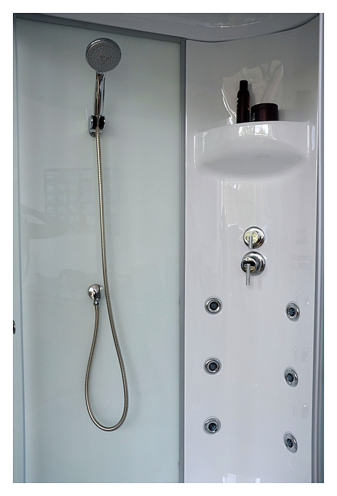Душевая кабина Royal Bath RB8100BP3-WT-CH-R предназначена для использования в ванных комнатах. Модель оснащена гидромассажной системой состоящей из 6 форсунок, душевой лейкой. Наличие сиденья обеспечивает максимальный комфорт при приеме душа, а на полке можно размещать необходимые мыльные принадлежности. Изделие выполнено из акрила, устойчивого к механическим повреждениям, обладающего небольшим весом и повышенной шумоизоляцией, безопасного закаленного стекла и усиленного алюминиевого профиля, чтобы обеспечить аккуратное скольжение раздвижных дверей, предусмотрены съемные подшипниковые ролики. Комплектация: