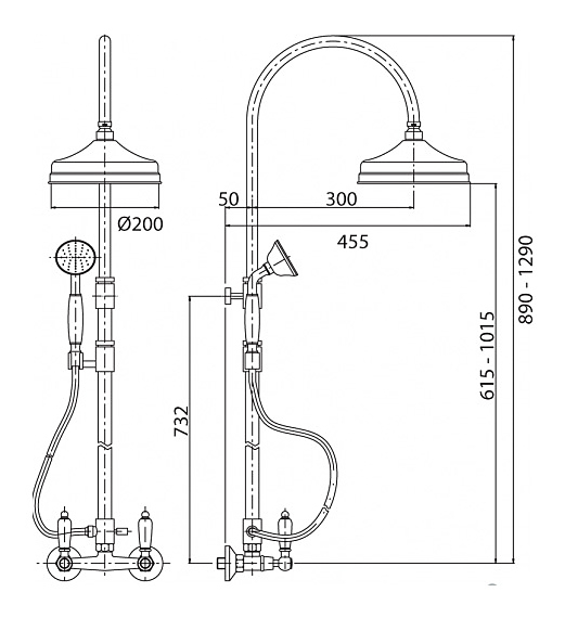 Стойка душевая CEZARES FIRST-CD-02-Bi, бронза, ручки белые