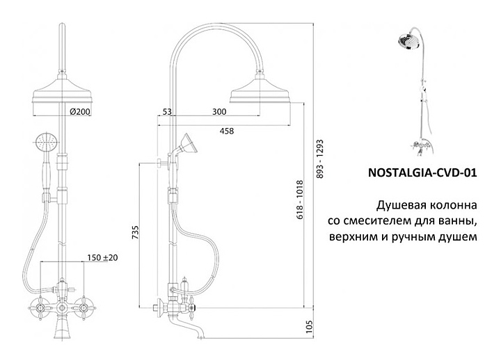 Душевая стойка CEZARES NOSTALGIA-CVD-03/24-M используется в ванных комнатах. Модель оснащена круглой лейкой, круглым верхним душем и изливом для ванны. Душевая стойка оборудована системой против известковых отложений для увеличения срока службы. Изделие выполнено из высококачественной латуни, которая отличается долговечностью и устойчивостью к перепадам температур. Особенности: