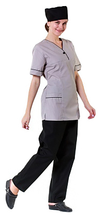 Женская футболка Клен 00011, р.50 используется поварами на предприятиях общественного питания и торговли. Модель украшена черным кантом по вороту, на рукавах и карманах. Изделие сшито из материала ТиСи, состоящего на 35% из хлопка, на 65% из полиэстера.