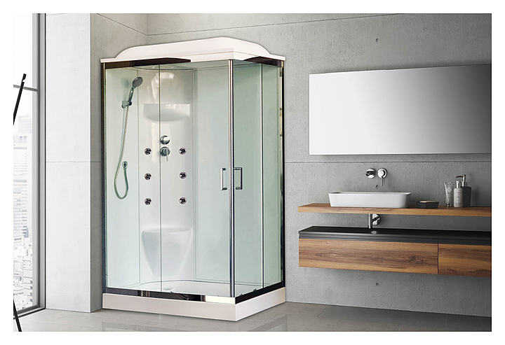 Душевая кабина Royal Bath RB8120HP7-WT-CH-L предназначена для использования в ванных комнатах. Модель оснащена гидромассажной системой состоящей из 6 форсунок, душевым гарнитуром, который включает в себя смеситель, тропический душ и эргономичную ручную лейку. Наличие сиденья обеспечивает максимальный комфорт при приеме душа, а на полке можно размещать необходимые мыльные принадлежности. Изделие выполнено из акрила, устойчивого к механическим повреждениям, обладающего небольшим весом и повышенной шумоизоляцией, безопасного закаленного стекла и усиленного алюминиевого профиля, чтобы обеспечить аккуратное скольжение раздвижных дверей, предусмотрены съемные подшипниковые ролики. Комплектация: