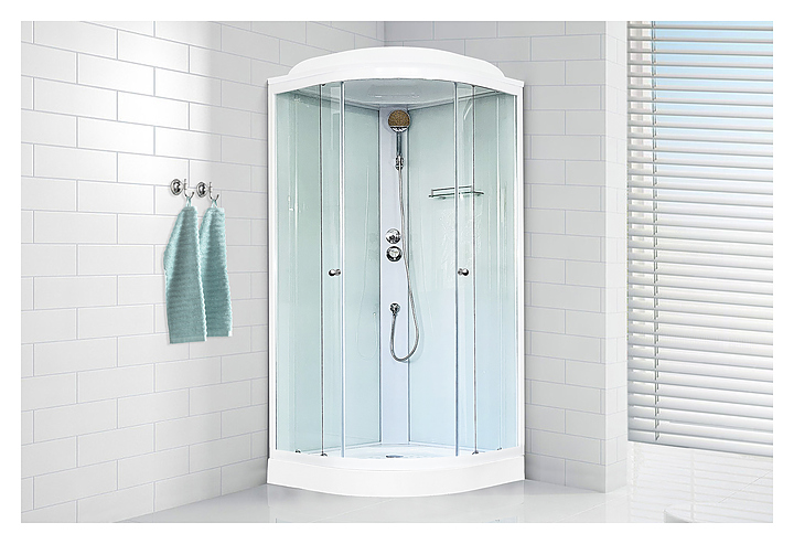 Душевая кабина Royal Bath RB90HK5-WT предназначена для использования в ванных комнатах. Модель оснащена душевым гарнитуром, который включает в себя смеситель, тропический душ и эргономичную ручную лейку. Наличие полки обеспечивает максимальный комфорт при приеме душа, где можно размещать необходимые мыльные принадлежности. Изделие выполнено из акрила, устойчивого к механическим повреждениям, обладающего небольшим весом и повышенной шумоизоляцией, безопасного закаленного стекла и усиленного алюминиевого профиля, чтобы обеспечить аккуратное скольжение раздвижных дверей, предусмотрены съемные подшипниковые ролики. Комплектация: