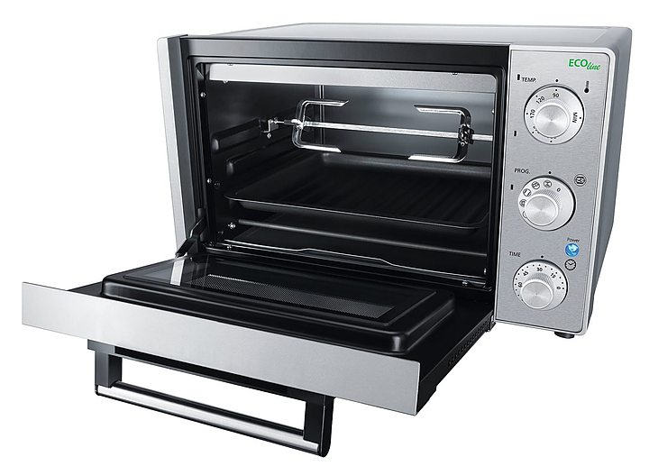 Мини-печь Steba KB 23 ECO предназначена для приготовления и разогрева различных блюд, выпечки кондитерских и хлебобулочных изделий в квартирах, частных домах, кафе и ресторанах. Модель оснащена механическим управлением, внутренней подсветкой и двойной стеклянной дверью. Корпус с улучшенной теплоизоляцией для уменьшения энергопотребления. В комплект поставки входят решетка для гриля, противень с антипригарным покрытием, поддон для крошек и вертел. Особенности: