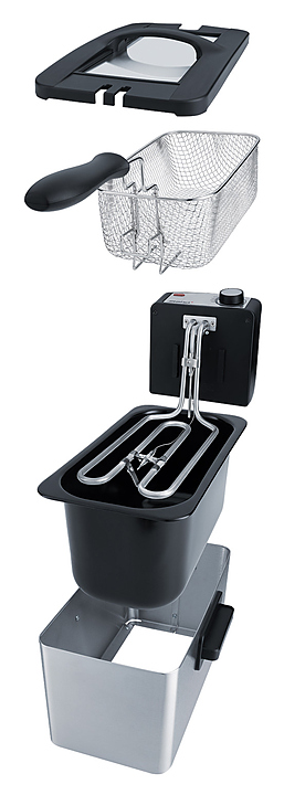 Фритюрница Steba DF 180 предназначена для приготовления различных продуктов в большом количестве горячего масла или жира в частных домах и квартирах. Модель оснащена панелью управления с поворотным регулятором и светодиодным индикатором температуры, съемным резервуаром для масла и крышкой со смотровым окном. Корпус выполнен из нержавеющей стали. Особенности: