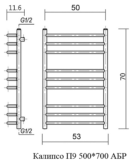 Водяной полотенцесушитель Domoterm Калипсо П9 50x70 см АБР предназначен для подогрева и сушки полотенец, а также для обогрева ванных комнат в квартирах, коттеджах, частных домах. Модель оснащена девятью перекладинами для удобного использования. Изделие выполнено из латуни, отличающейся прочностью, долговечностью и устойчивостью к перепадам температур. Комплект поставки: