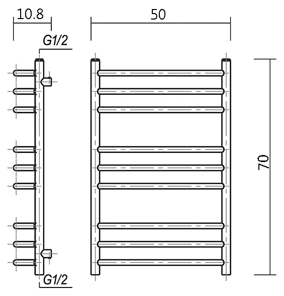 Водяной полотенцесушитель Domoterm Лаура П9 50x70 см АБР предназначен для подогрева и сушки полотенец, а также для обогрева ванных комнат в квартирах, коттеджах, частных домах. Модель оснащена девятью перекладинами для удобного использования. Изделие выполнено из латуни, отличающейся прочностью, долговечностью и устойчивостью к перепадам температур. Комплект поставки: