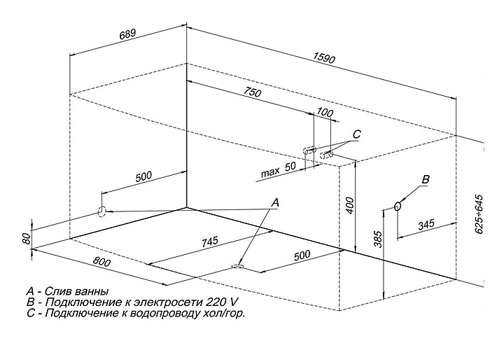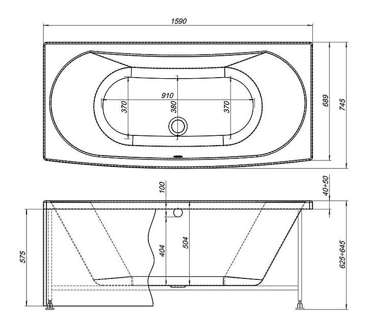 Ванна Aquanet Izabella 160x75 см, акрил