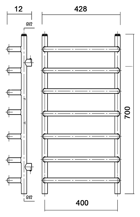 Водяной полотенцесушитель Domoterm Стефано П7 40x70 см АБР предназначен для подогрева и сушки полотенец, а также для обогрева ванных комнат в квартирах, коттеджах, частных домах. Модель оснащена семью перекладинами для удобного использования. Изделие выполнено из латуни, отличающейся прочностью, долговечностью и устойчивостью к перепадам температур. Комплект поставки: