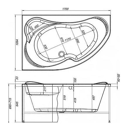 Ванна Aquanet Capri 170x110 L 170х110 см, акрил, левосторонняя