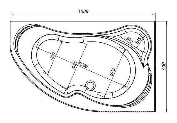 Ванна Aquanet Capri 160x100 R 160х100 см, акрил, правосторонняя