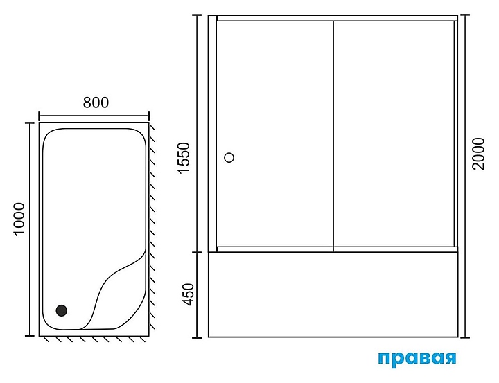 Уголок душевой Royal Bath RB 8100BP-T-R 100х80х200 см, прозрачное, белый профиль, правый