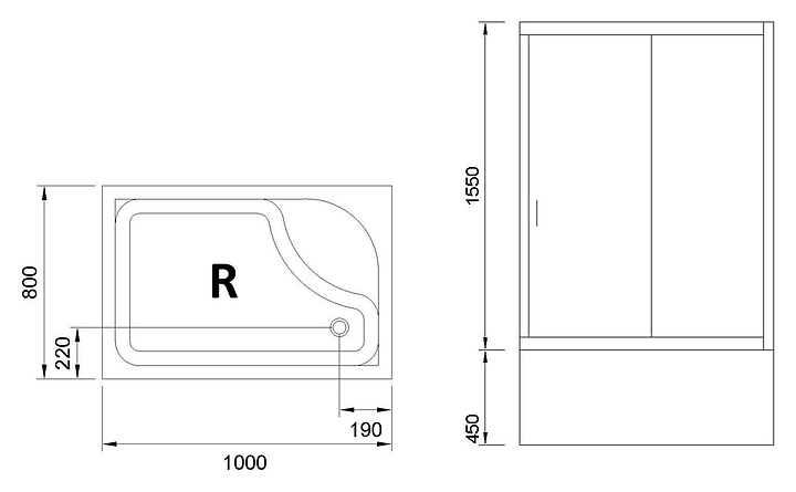 Уголок душевой Royal Bath RB 8100BP-T-CH-R 100х80х200 см, прозрачное, хромированный профиль, правый