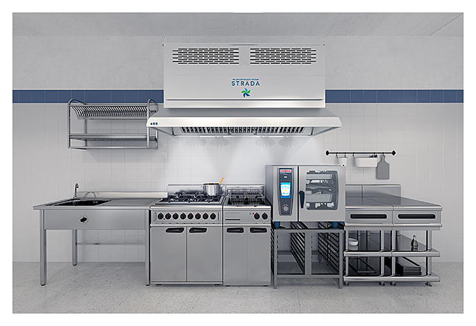 Вытяжной зонт-рециркулятор STRADA ЗОНТ 4,0 предназначен для очищения воздуха от излишков пара, дыма, жира и продуктов горения и обеспечения его рециркуляции на предприятиях общественного питания и торговли. Прибор обеспечивает 95% удаление запахов, жира, сажи и дыма. Зонт устанавливается над тепловым оборудованием. Модель оснащена 4 вентиляторами и 8 светильниками. Корпус выполнен из нержавеющей стали AISI 430. Обслуживание газоконвектора заключается в промывке модулей фильтра первой ступени и замене кассет второй ступени раз в 4-12 месяцев. Особенности:
