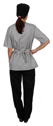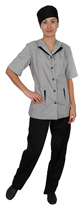 Женская блузка Клен 00009, р.54 используется поварами на предприятиях общественного питания и торговли. Модель украшена V-образным отложным воротником, пуговицами и черными вставками у воротника и карманов. Изделие сшито из материала ТиСи, состоящего на 35% из хлопка, на 65% из полиэстера. Блузка может использоваться вместе с универсальными брюками и женскими сабо. Дополнительные характеристики: