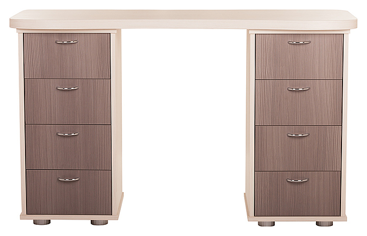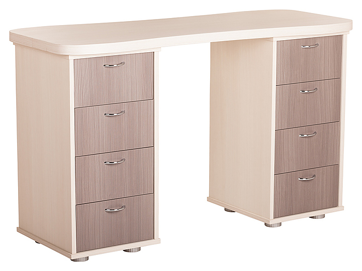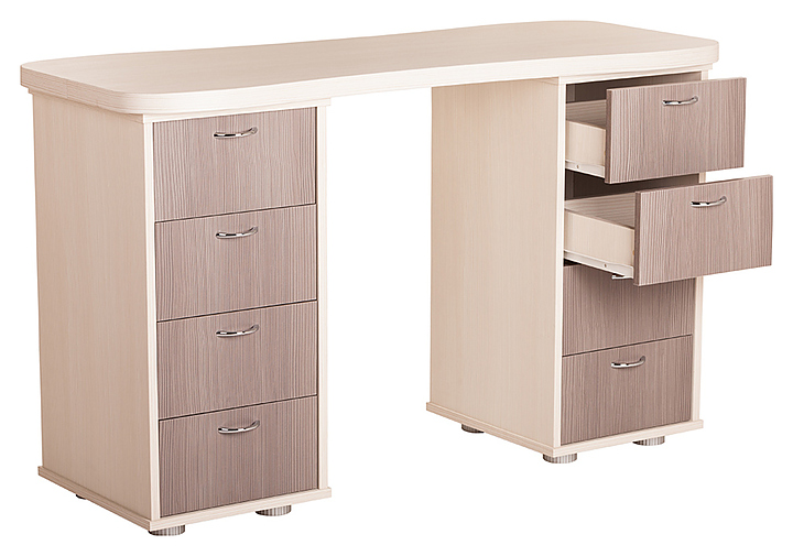 Маникюрный стол PANDA 216 с двумя тумбами предназначен для обустройства рабочего пространства мастера маникюра в косметологических центрах, салонах красоты и домашних студиях ногтевого сервиса. Модель оснащена столешницей и тумбами с выдвижными ящиками. Столешница и тумбы изготовлены из ЛДСП. Особенности: