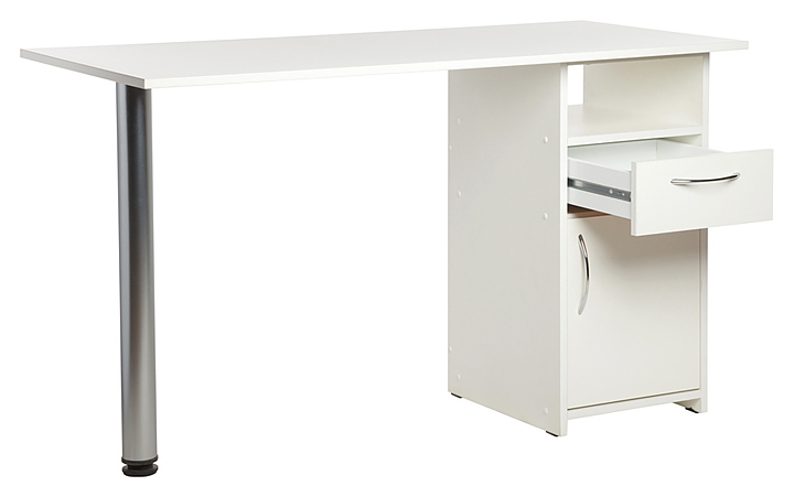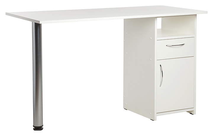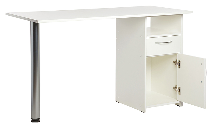 Маникюрный стол PANDA 307 предназначен для обустройства рабочего пространства мастера маникюра в косметологических центрах, салонах красоты и домашних студиях ногтевого сервиса. Модель оснащена столешницей, цилиндрической опорой, встроенной тумбой с открытой полкой, выдвижным ящиком и отделением с дверцей. Столешница и тумба изготовлены из ЛДСП, фурнитура - из хромированного никеля. Особенности:
