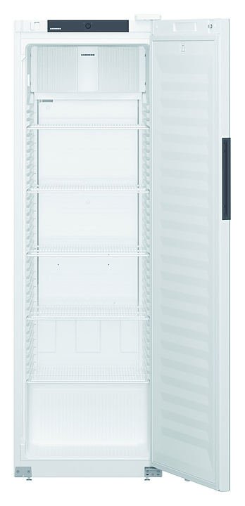 Холодильный шкаф Liebherr MRFvc 4001 предназначен для охлаждения и кратковременного хранения скоропортящихся продуктов и напитков на предприятиях общественного питания и торговли. Модель оснащена механическим управлением с поворотным регулятором, аналоговым индикатором температуры, встроенной боковой ручкой, перенавешиваемой самозакрывающейся дверцью с петлями справа и механическим замком и регулируемыми ножками. Внутренняя прокладка выполнена из полистирола профессионального применения, корпус - из стали, дверь - из закаленного однослойного стекла, отличающегося высокой ударопрочностью, покрытие решеток - из пластика, ножки - из оцинкованной стали. Особенности: