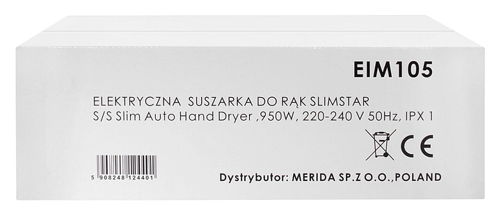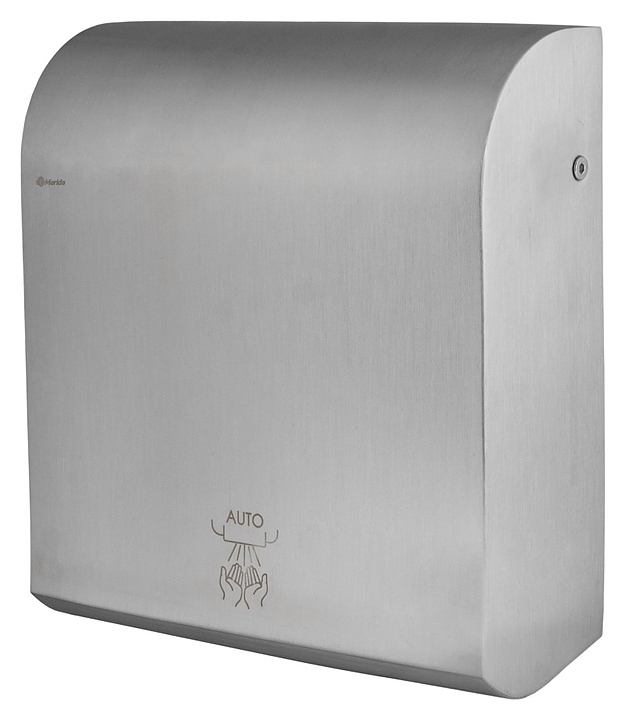 Сушилка для рук Merida SLIMSTAR используется в туалетных комнатах торговых центров, гостиниц, аэропортов, предприятий общепита и других местах массового пребывания для бесконтактной гигиеничной сушки. Модель оснащена защитной решеткой и кабелем питания. Лицевая панель корпуса выполнена из матовой нержавеющей стали, задняя панель – из стали с антикоррозийным порошковым покрытием. Особенности: