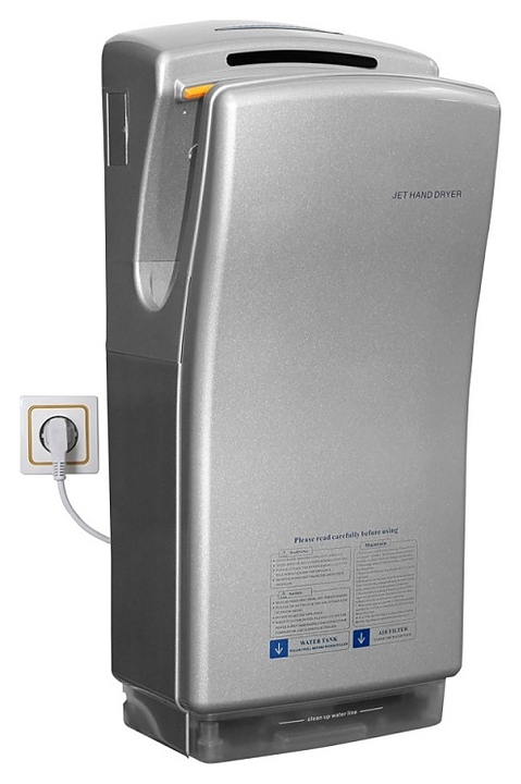 Сушилка для рук погружного типа Merida ECO JET используется в туалетных комнатах торговых центров, гостиниц, аэропортов, предприятий общепита и других местах массового пребывания для бесконтактной гигиеничной сушки. Модель оснащена светодиодным экраном в сушильной нише и кабелем питания с вилкой. Корпус выполнен из ударопрочного АБС-пластика. Особенности: