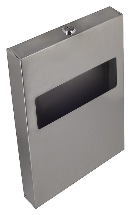 Диспенсер Merida STELLA GSM001 предназначен для размещения гигиенических подкладок в общественных санитарных узлов гостиниц, предприятий общепита, медицинских учреждений и других мест массового пребывания. Модель оснащена запираемым на ключ барабанным замком и прямоугольным окошком. Корпус изготовлен из матовой нержавеющей стали 201. Минимальный заказ: 2 ед. Дополнительные характеристики: