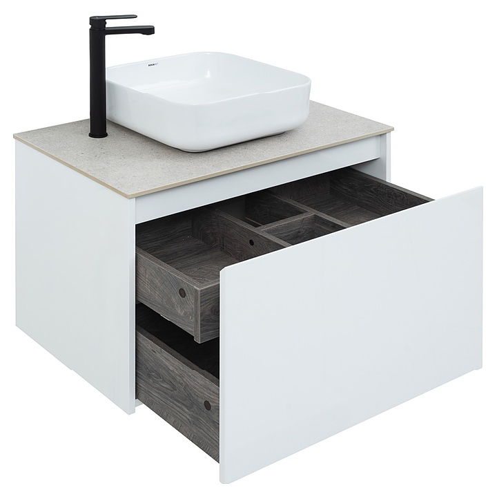 Тумба под раковину Aquanet Nova Lite 75 выполнена в стиле модерн и прекрасно впишется в интерьер любой ванной комнаты. Благодаря подвесной конструкции модель не занимает много места, что экономит пространство в ванной комнате и облегчает уборку. Тумба оснащена одним выдвижным ящиком с доводчиками для плавной и бесшумной работы. Фасад выполнен с декоративной интегрированной ручкой, не имеющей острых краев и внутренних углов, что обеспечивает удобство эксплуатации и легкий уход за мебелью. Корпус и фасад изделия выполнены из влагостойкой ЛДСП с покрытием ламинат. Раковина и столешница в комплект поставки не входят и приобретаются отдельно. Особенности: