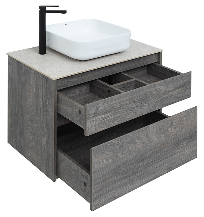 Тумба под раковину Aquanet Nova Lite 75 выполнена в стиле модерн и прекрасно впишется в интерьер любой ванной комнаты. Благодаря подвесной конструкции модель не занимает много места, что экономит пространство в ванной комнате и облегчает уборку. Тумба оснащена двумя выдвижными ящиками с доводчиками для плавной и бесшумной работы. Фасады выполнены с интегрированными ручками, не имеющими острых краев и внутренних углов, что обеспечивает удобство эксплуатации и легкий уход за мебелью. Корпус и фасад изделия выполнены из влагостойкой ЛДСП. Раковина и столешница в комплект поставки не входят и приобретаются отдельно. Особенности:
