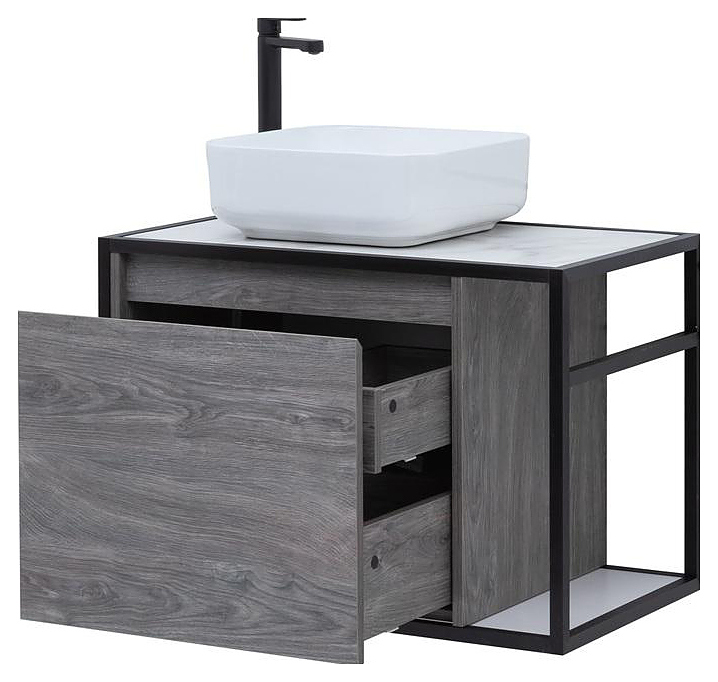 Тумба под раковину Aquanet Nova Lite Loft 75 L выполнена в стиле лофт и подчеркнет интерьер ванной комнаты. Благодаря подвесной конструкции модель не занимает много места, что экономит пространство в ванной комнате и облегчает уборку. Тумба оснащена одним выдвижным ящиком с доводчиками для плавной и бесшумной работы. Фасад выполнен с интегрированной ручкой, не имеющей острых краев и внутренних углов, что обеспечивает удобство эксплуатации и легкий уход за мебелью. Корпус и фасад изделия выполнены из влагостойкой ЛДСП с покрытием ламинат. Раковина и столешница в комплект поставки не входят и приобретаются отдельно. Особенности: