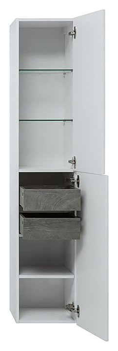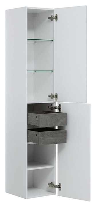 Шкаф-пенал Aquanet Nova украсит интерьер ванной комнаты. Благодаря подвесной конструкции модель не занимает много места, что позволяет экономить пространство и облегчает уборку, также возможна установка на ножки. Шкаф-пенал оборудован полками и двумя выдвижными ящиками с доводчиками. Изделие выполнено из влагостойкой ЛДСП. Ручки и ножки в комплект поставки не входят и приобретаются отдельно. Опции (заказываются отдельно):