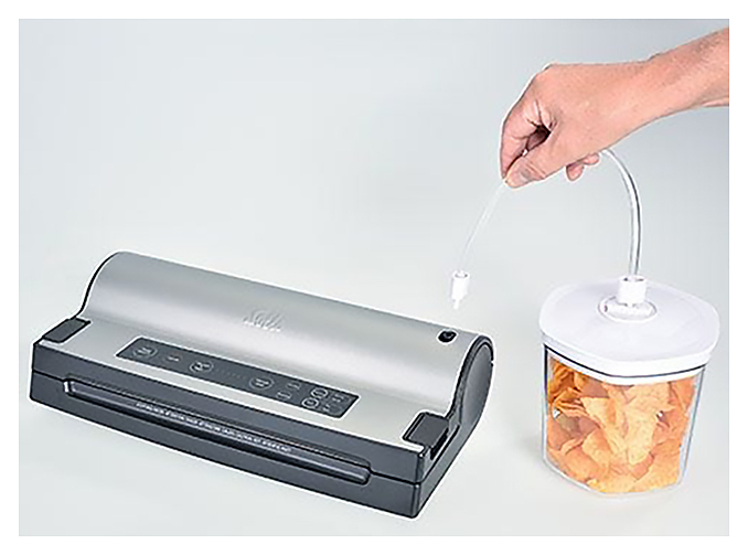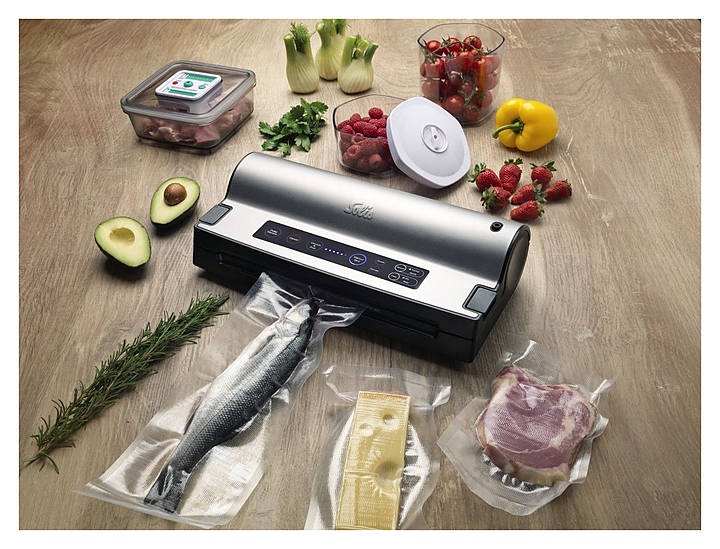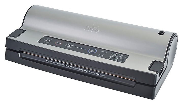 Вакуумный упаковщик Solis Vac Prestige используется в частных домах, квартирах, отелях и офисах для упаковки в вакуум мяса, рыбы, овощей, фруктов и домашних заготовок в пакетах или контейнерах для увеличения срока хранения. Модель оснащена сенсорной панелью управления с индикаторами режимов работы, встроенным резаком для пленки и вакуумным шлангом для контейнеров. Корпус выполнен из пластика, крышка - из нержавеющей стали. Особенности: