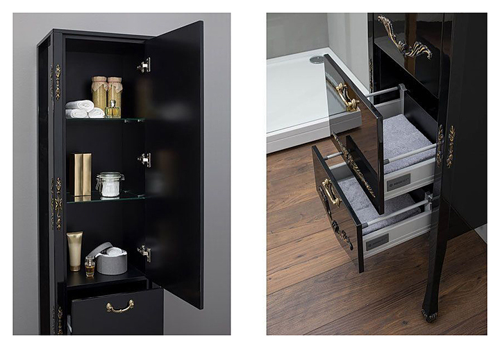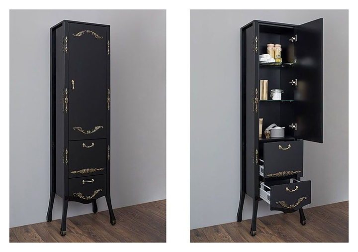 Шкаф-пенал Aquanet Виктория 40 черный/золото