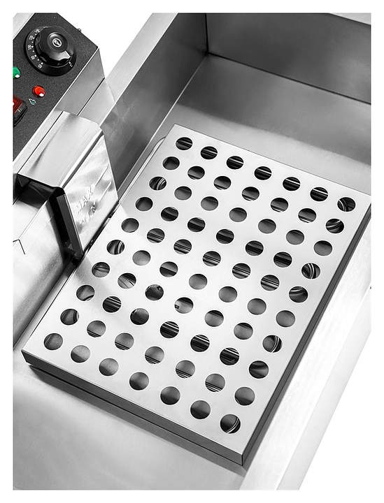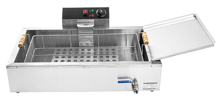 Чебуречница GASTRORAG CZG-EF-16L предназначена для приготовления чебуреков и других блюд на предприятиях общественного питания и торговли. Модель оснащена электромеханическим термостатом и сетчатой корзиной с 2 деревянными ручками. Корпус и корзина выполнены из нержавеющей стали. В комплект поставки входит решетка. Особенности: