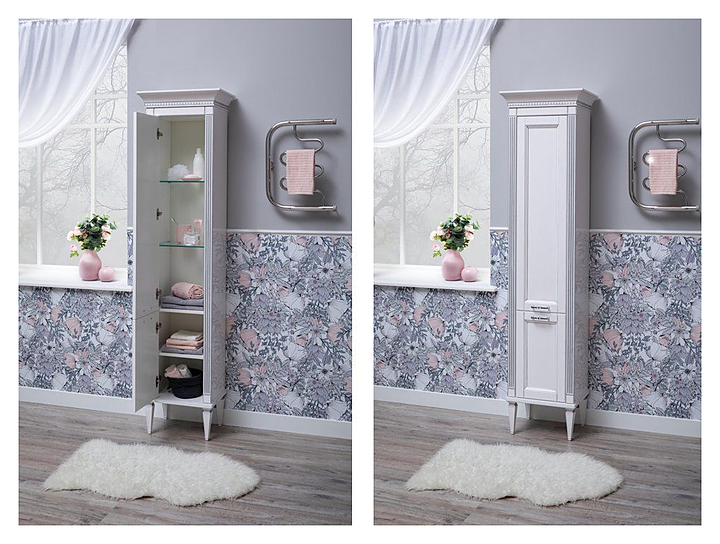 Шкаф-пенал Aquanet Селена 40 украсит интерьер ванной комнаты. Модель оборудована 2 распашными дверцами и 4 полками. Корпус изделия выполнен из влагостойкой ЛДСП, а фасады из МДФ и покрыты эмалью. Особенности: