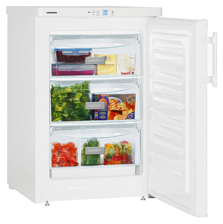 Морозильная камера Liebherr G 1223 класса Comfort предназначена для заморозки и длительного хранения продуктов и полуфабрикатов в частных домах, квартирах, отелях и офисах. Модель оснащена ЖК-дисплеем MagicEye с графической индикацией температуры и кнопочным управлением. Корпус и дверь выполнены из стали, полки - из закаленного стекла. Особенности: