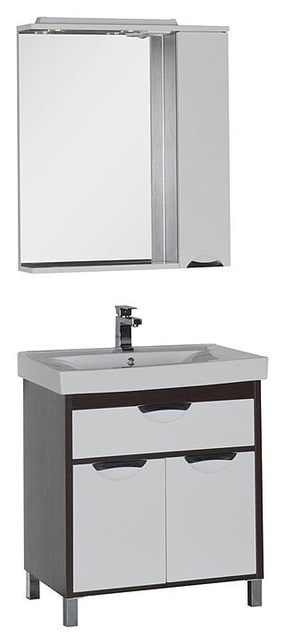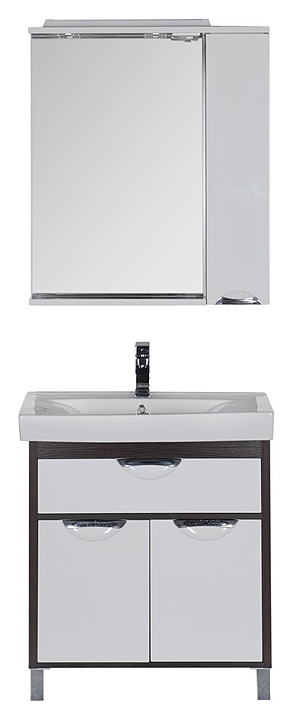 Зеркало Aquanet Гретта 75 от российского бренда дополнит интерьер ванной комнаты. Благодаря подвесной конструкции модель не занимает много места, что позволяет экономить пространство, а также облегчает уборку. Зеркало оснащено подсветкой, компактной полочкой и боковым шкафчиком для размещения аксессуаров. Корпус изделия выполнен из влагостойкой ЛДСП, а фасад из МДФ с покрытием глянцевой краской. Особенности: