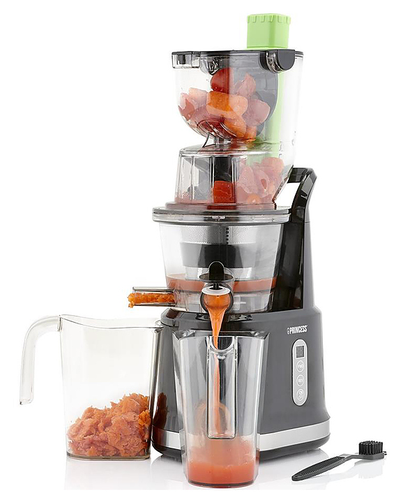 Cоковыжималка Princess 202045 предназначена для получения свежевыжатого сока из различных овощей, фруктов и трав в частных домах, квартирах, отелях и офисах. Модель оснащена 2 чашами для сока и жмыха, вертикальным коническим шпинделем и ситом. Корпус и чаши выполнены из пластика, сито - из нержавеющей стали. В комплект поставки входит щетка для очистки. Особенности: