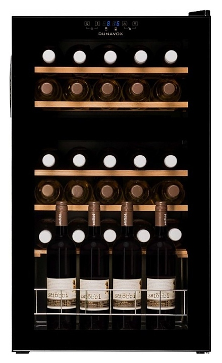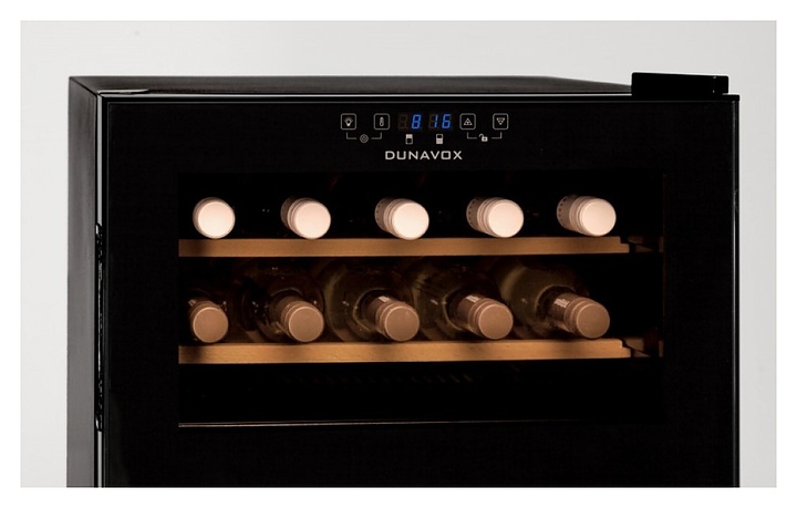 Винный шкаф Dunavox DXFH-30.80 предназначен для демонстрации, хранения и создания оптимальных условий для сохранения всех вкусовых свойств вина в бутылках на предприятиях общественного питания, торговли, в барах, ресторанах, специализированных магазинах, частных домах или квартирах. Модель оснащена сенсорной панелью управления и электронным термостатом. Корпус выполнен из стали, дверь - из рамы черного цвета и двойного тонированного стекла с защитой от ультрафиолетовых лучей, выдвижные полки - из массива бука. Особенности: