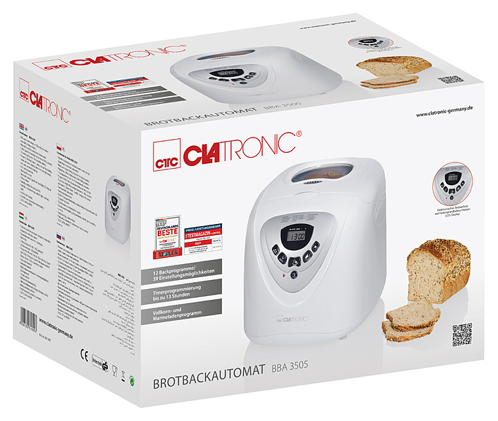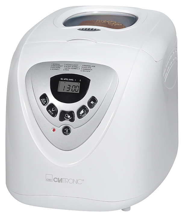 Хлебопечь Clatronic BBA 3505 используется в частных домах и квартирах для приготовления хлеба, хлебобулочных изделий, тортов и джема. Модель оснащена электронной панелью управления с ЖК-дисплеем, съемной крышкой со смотровым окном и съемной формой для выпечки с антипригарным покрытием. Особенности: